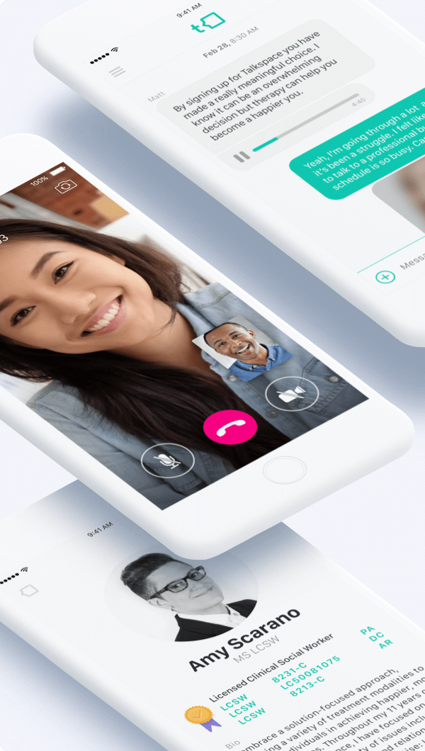 If you are not covered by insurance, know that Talkspace is more affordable than most co-pays for in-person “traditional therapy.” You can also pay for text therapy with an FSA/HSA card or look for coverage options offered through employers, educational institutions, and other large member organizations. Talkspace also offers an affordable therapy app that allows individuals to access online therapy on-the-go and at their own pace. It’s a flexible way to complete a clinically-supported program designed to help participants prioritize their mental well-being, available in the Apple App Store and Google Play Store.
